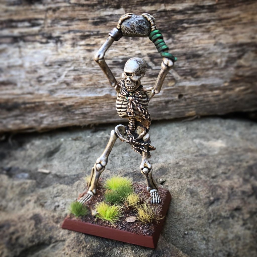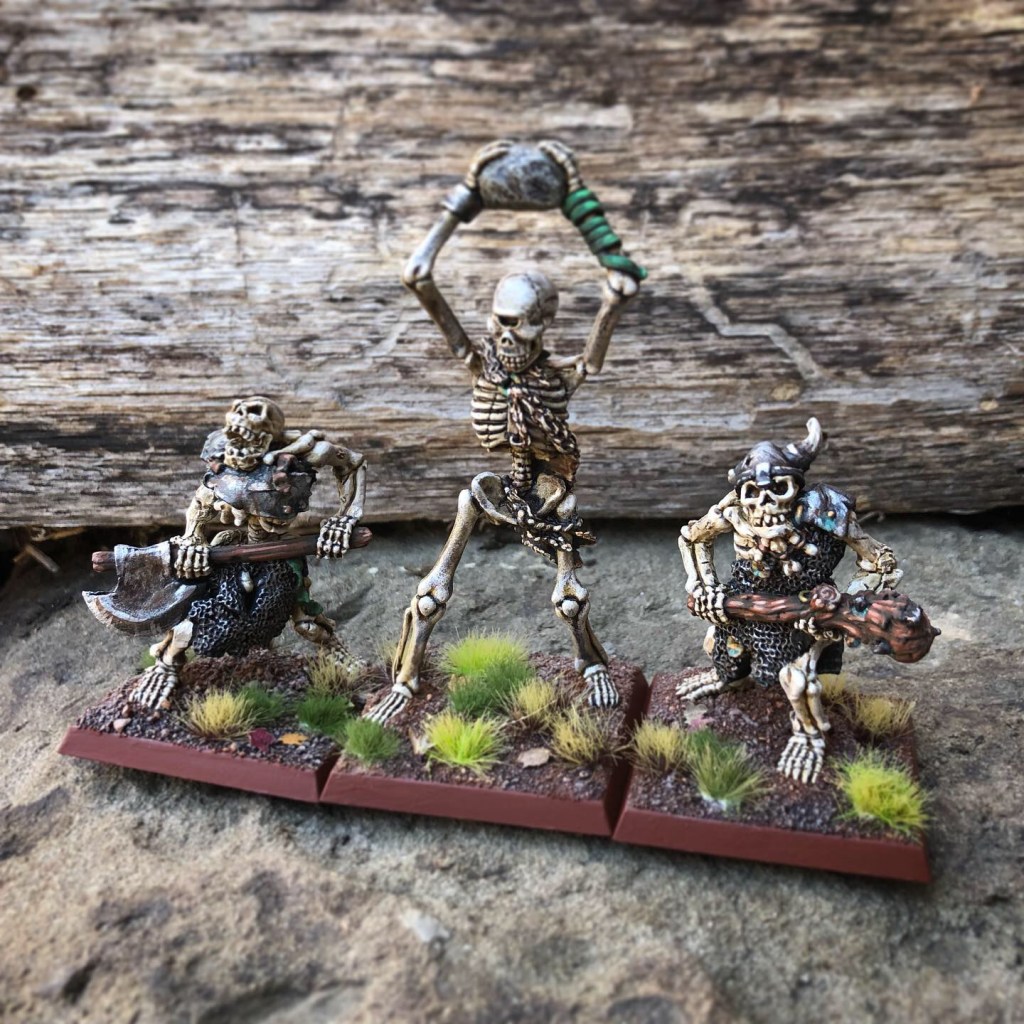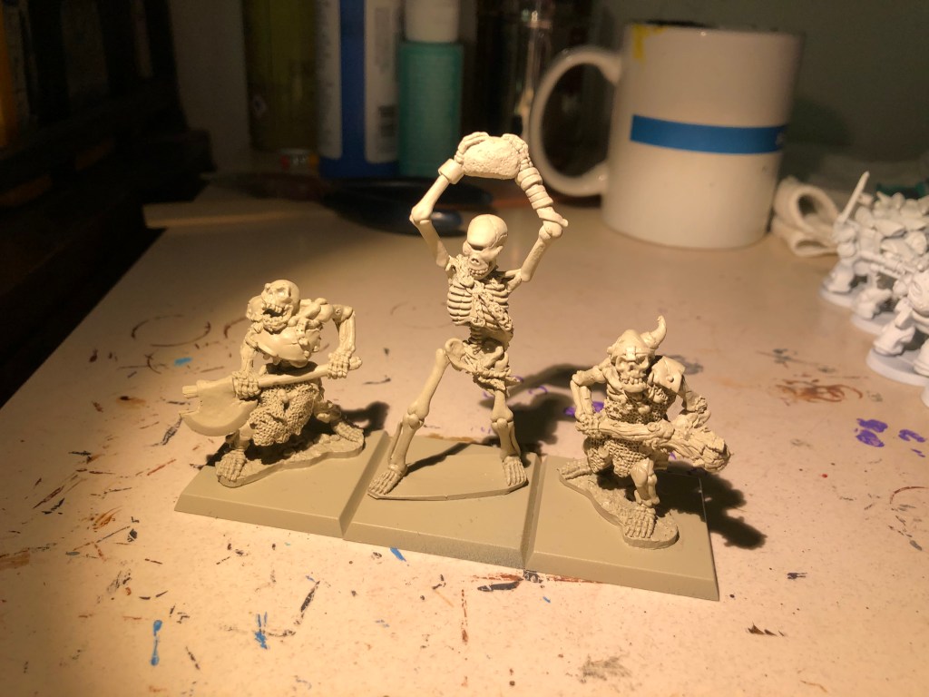 Skeletal ogres (and a cyclops) that will count as “zombie trolls” in my skeleton army for Kings of War.